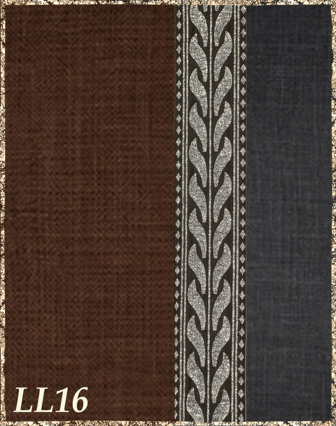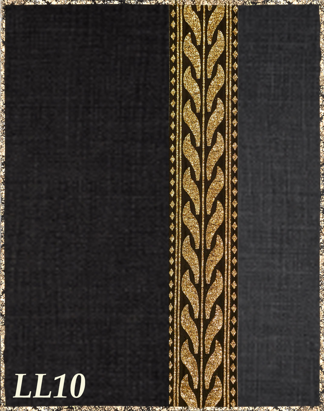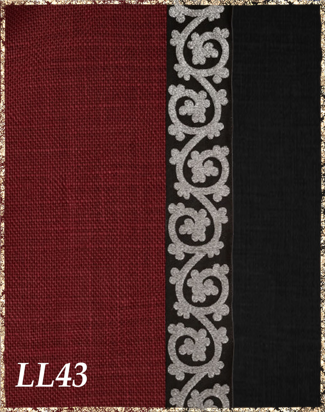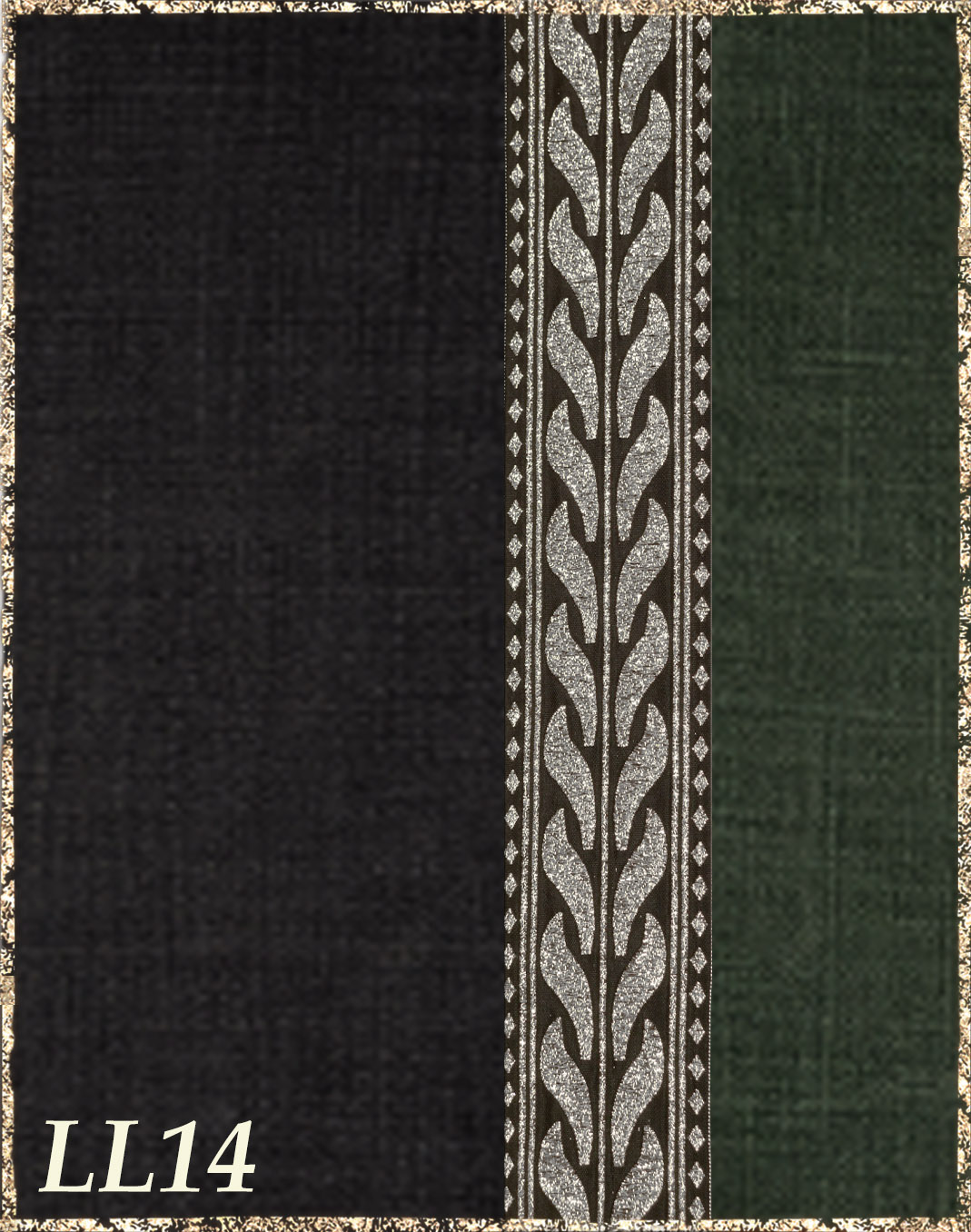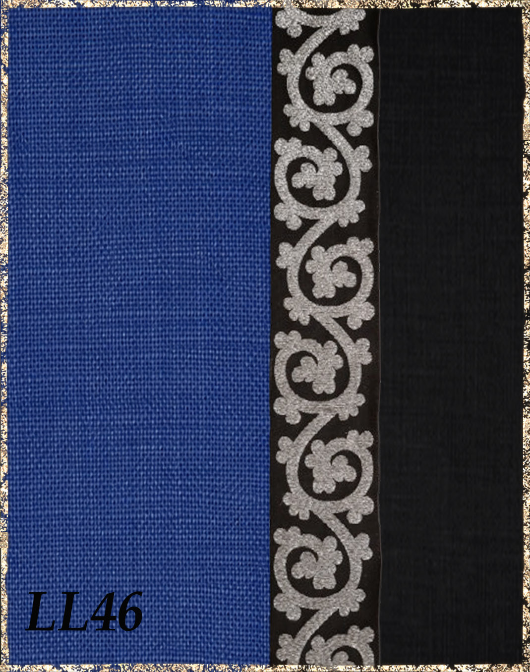Farbvarianten: Die linke Seite des Farbbildes beschreibt immer die Hauptfarbe des Gewandes, die rechte Seite die Nebenfarbe (hier schmaler Halsbeleg und Ärmelfutter). Die Borten sind größenmäßig vergleichbar mit der Modellborte. Andere Kombination gewünscht? Wähle das "?"