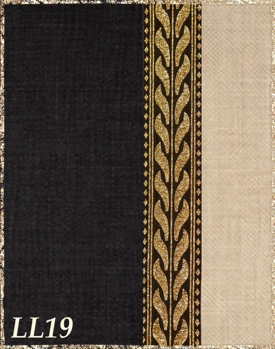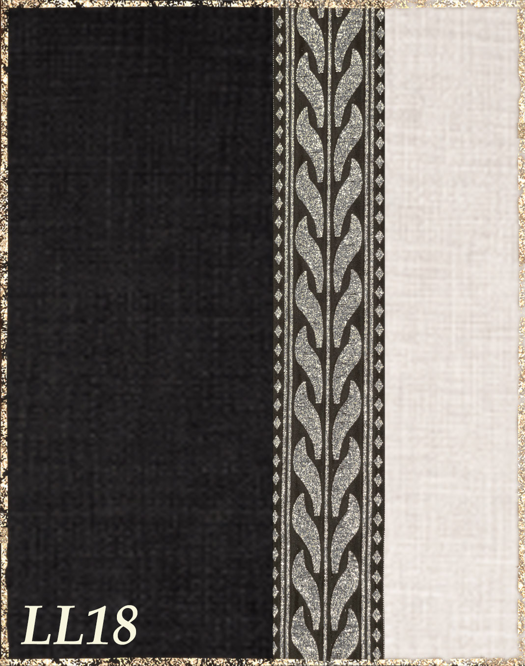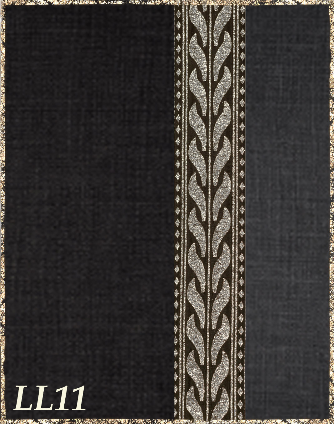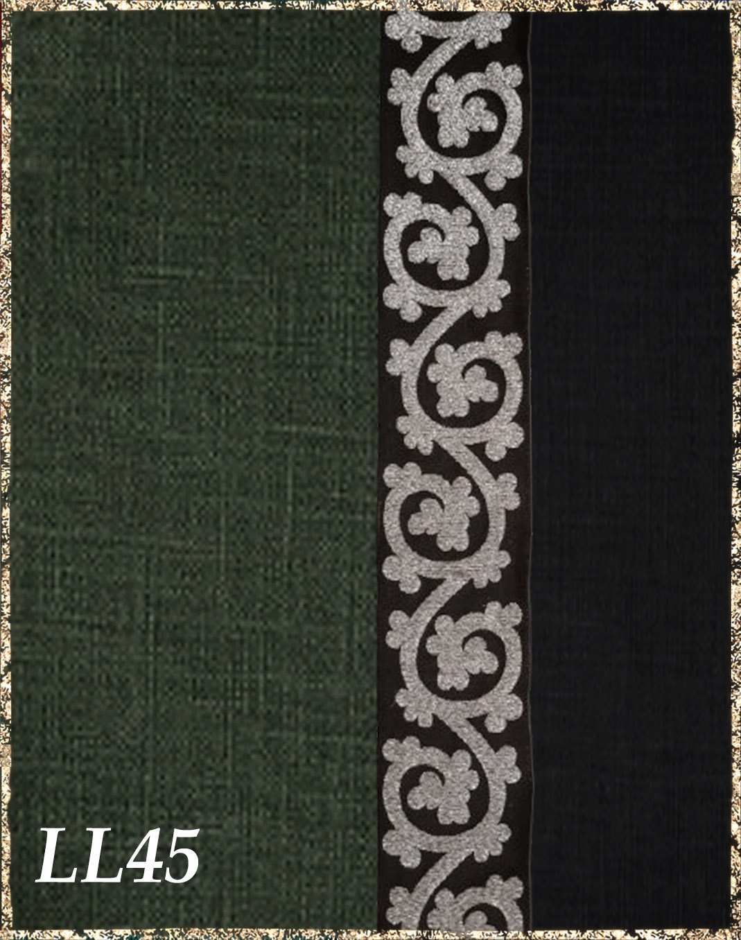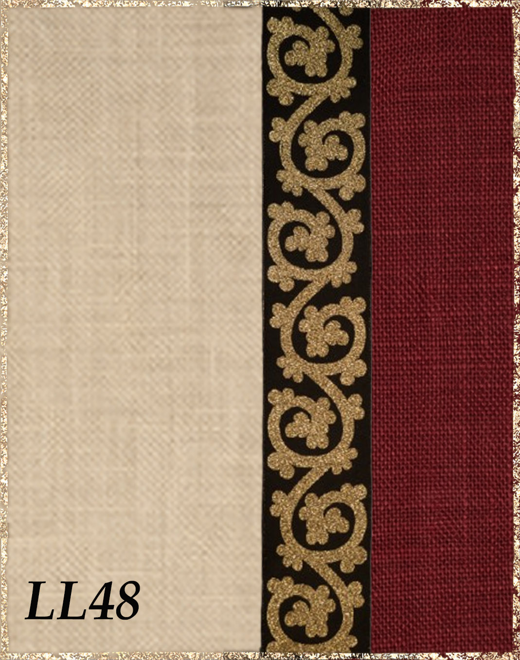 Farbvarianten: Die linke Seite des Farbbildes beschreibt immer die Hauptfarbe des Gewandes, die rechte Seite die Nebenfarbe (hier schmaler Halsbeleg und Ärmelfutter). Die Borten sind größenmäßig vergleichbar mit der Modellborte. Andere Kombination gewünscht? Wähle das "?"