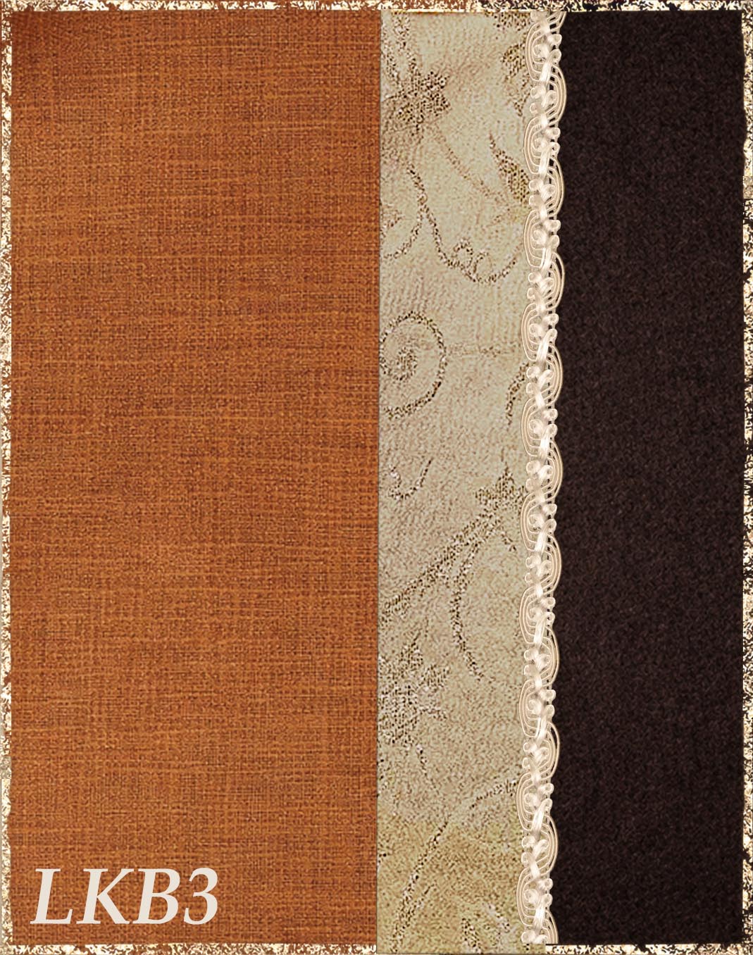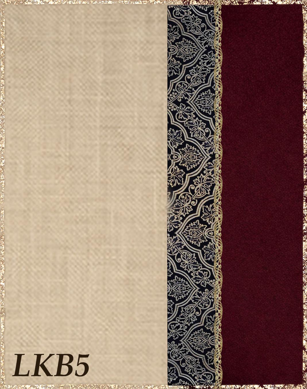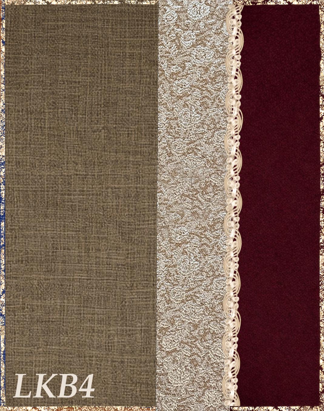 Farbvarianten: Die linke Seite des Farbbildes beschreibt immer die Farbe des Untergewandes aus Leinen, die rechte Seite die Farbe des Überkleides aus Kaschmirloden. Borte und Brokat sind größenmäßig vergleichbar mit der Modellborte. Andere Kombination gewünscht? Wähle das "?"
