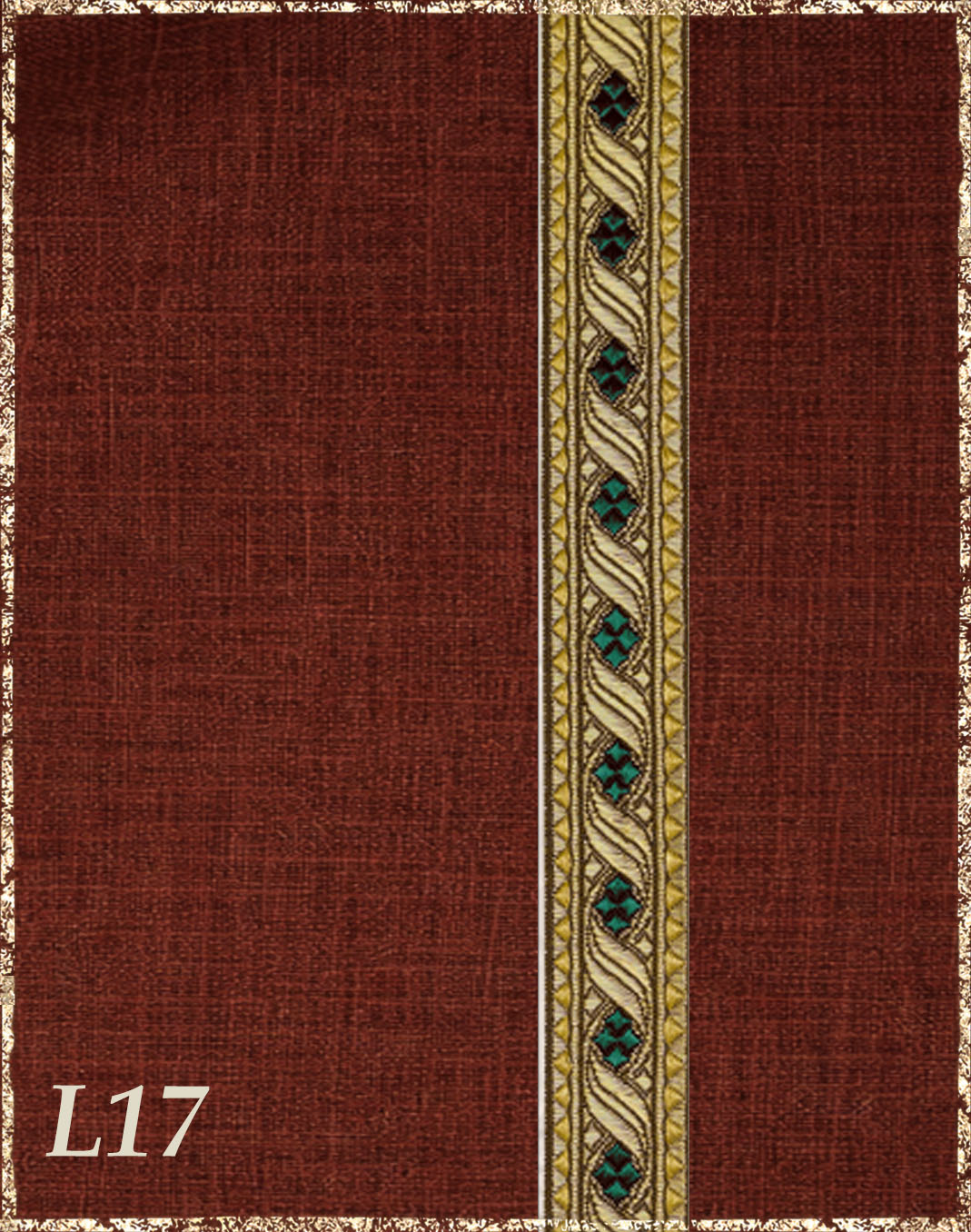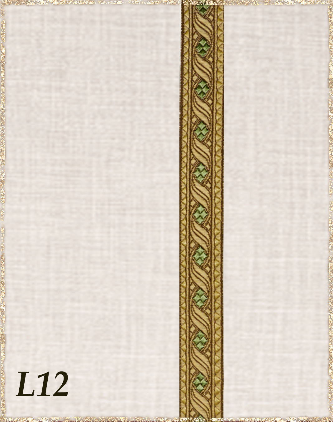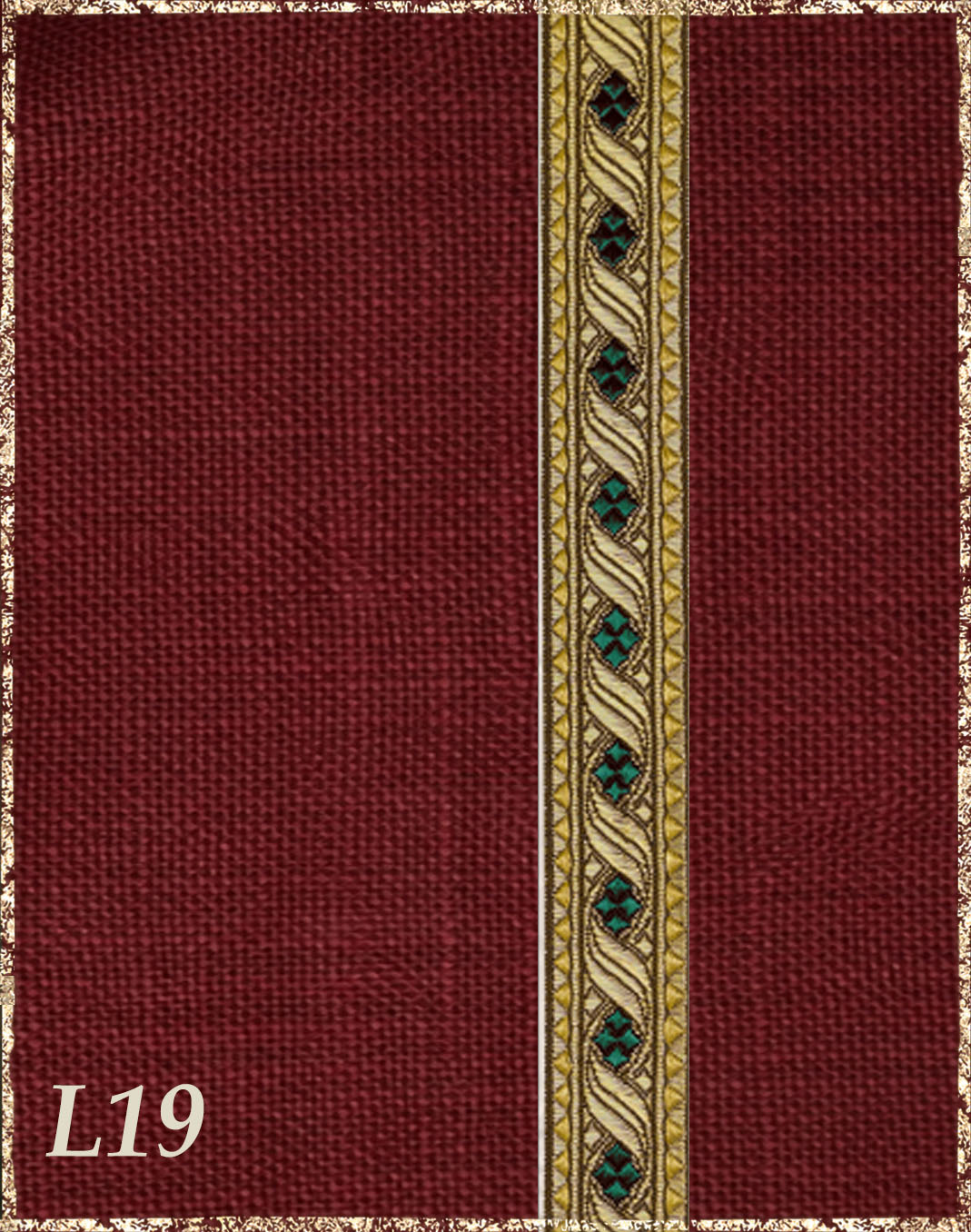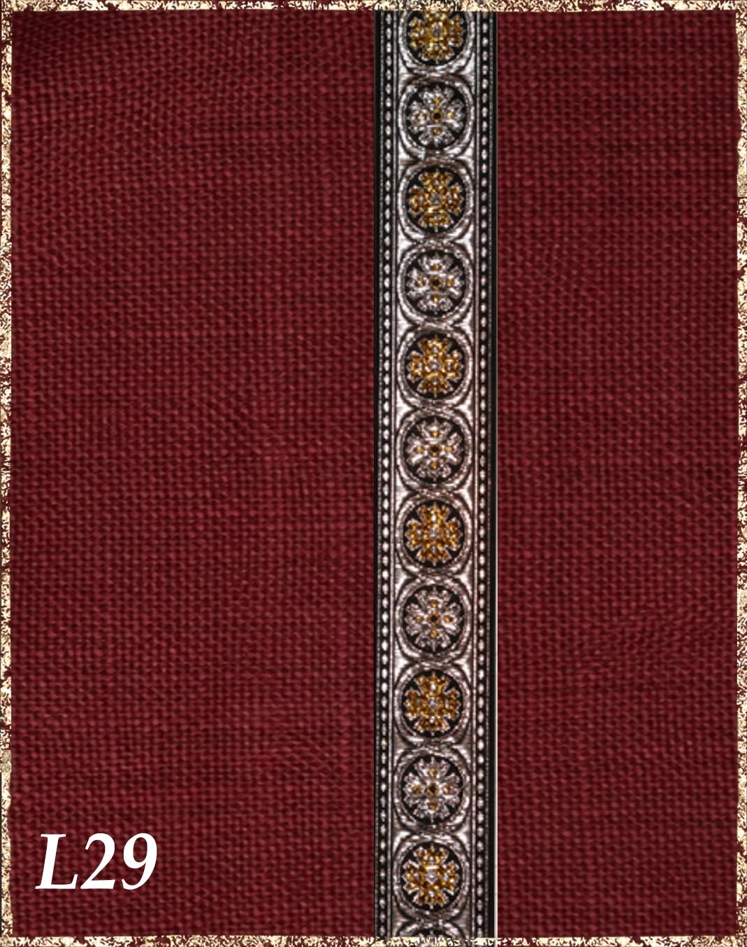 Farbvarianten: Hier siehst du unsere vorgeschlagenen Farben des Gewandes, zusammen mit der Borte. Die Borten sind größenmäßig vergleichbar mit der Modellborte. Andere Kombination gewünscht? Wähle das "?"