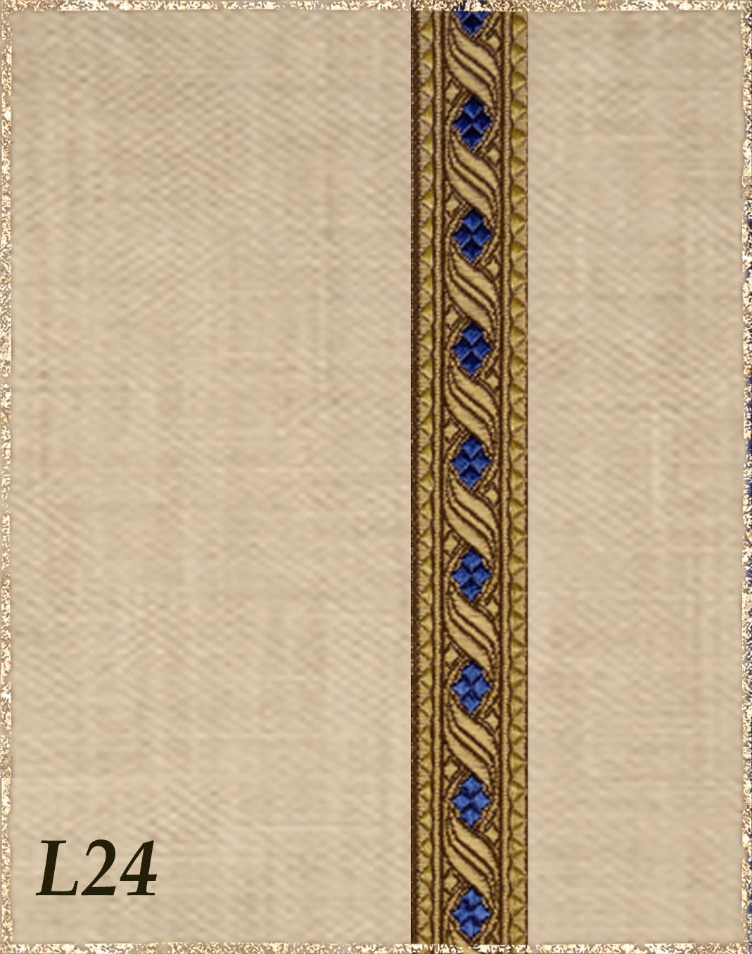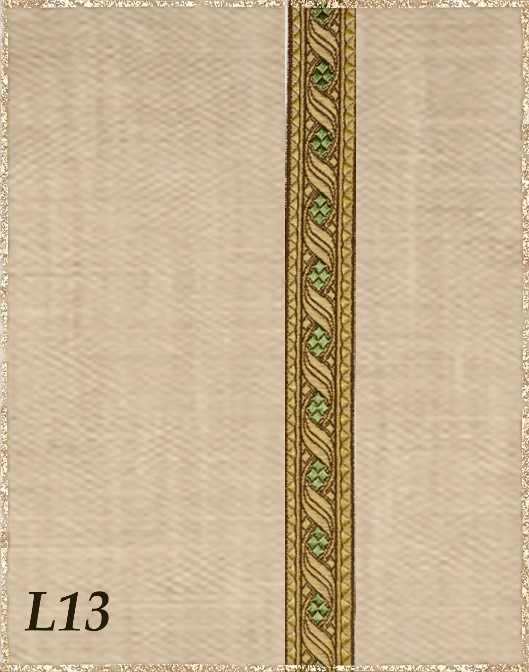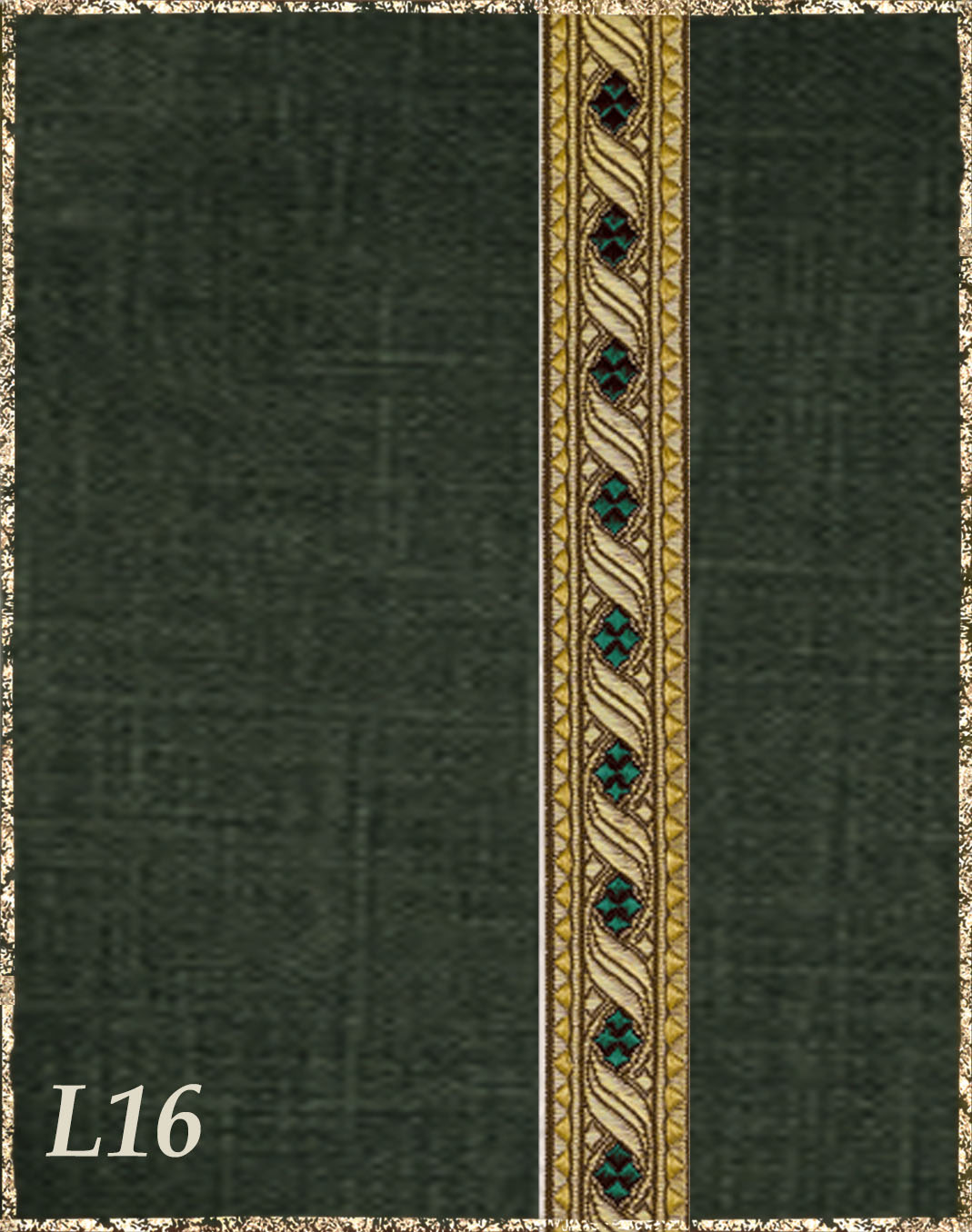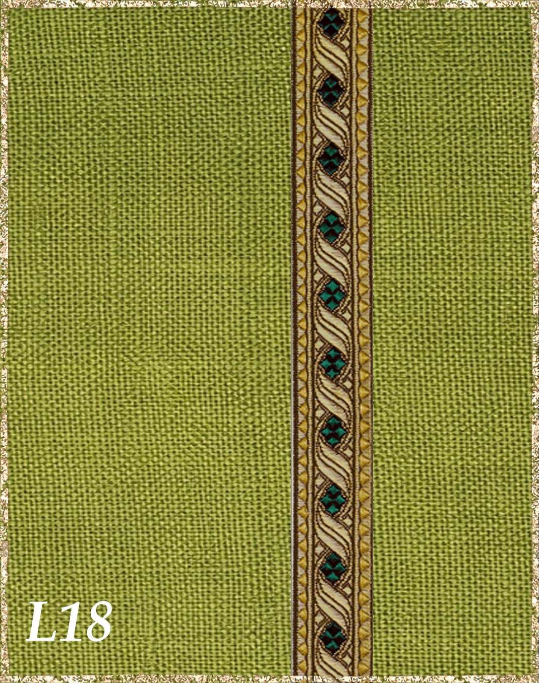 Farbvarianten: Hier siehst du unsere vorgeschlagenen Farben des Gewandes, zusammen mit der Borte. Die Borten sind größenmäßig vergleichbar mit der Modellborte. Andere Kombination gewünscht? Wähle das "?"