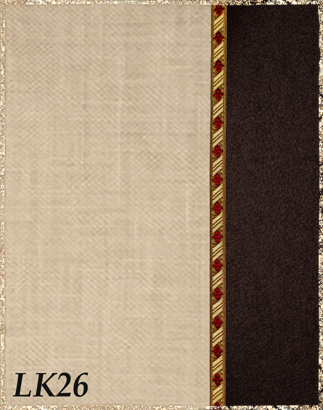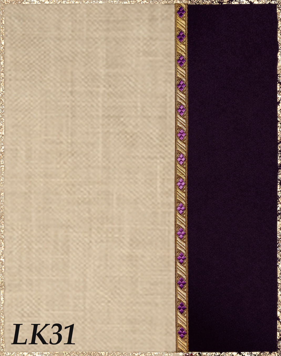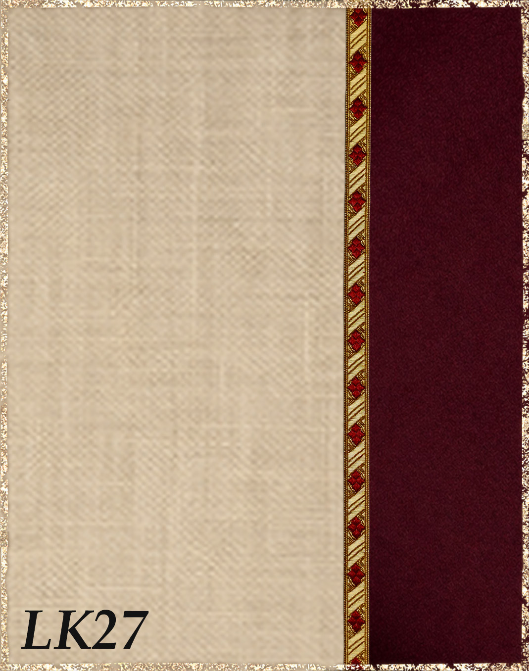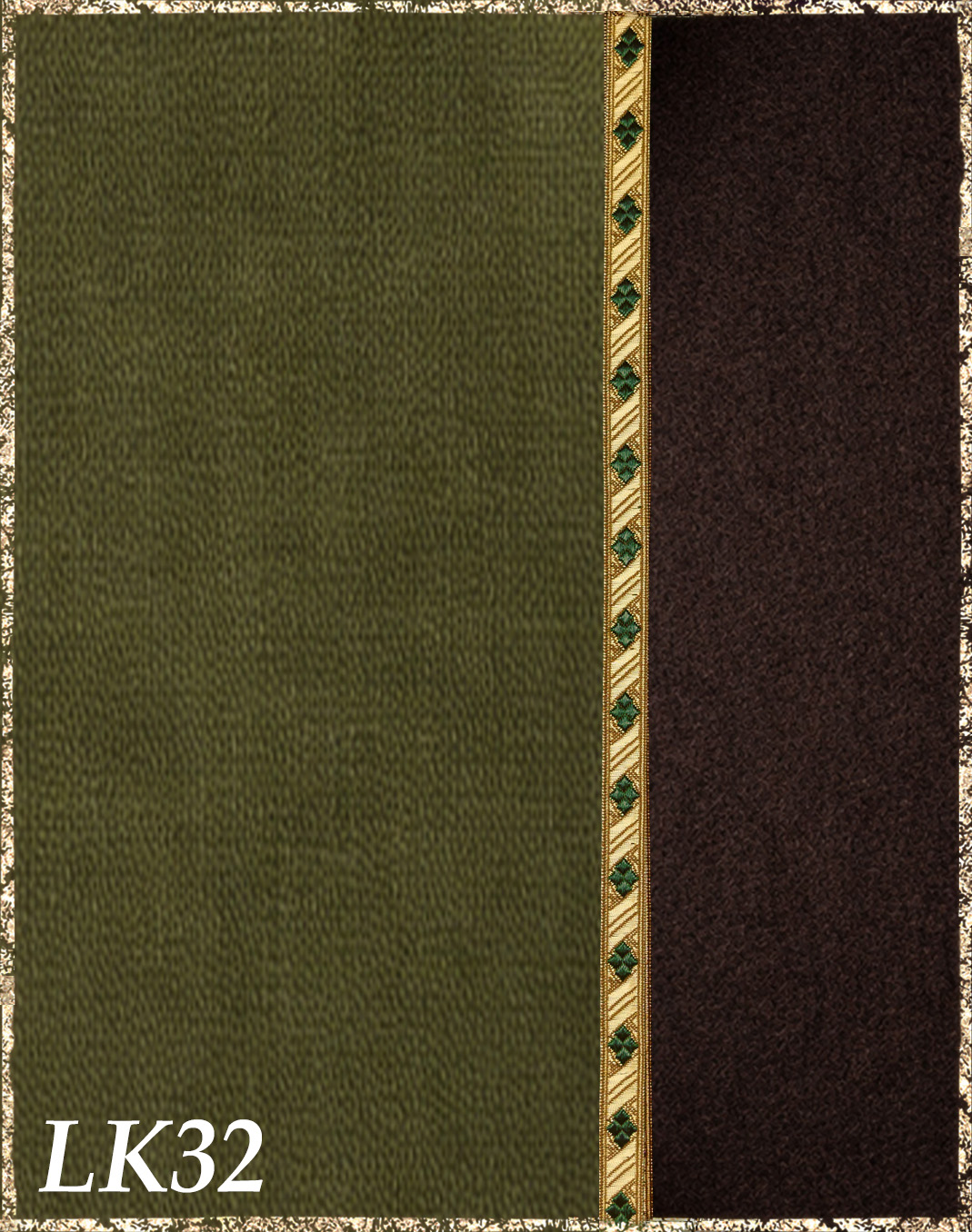 Farbvarianten: Die rechte Seite des Farbbildes beschreibt immer die Farbe des Überkleides aus Kaschmirloden, die linke Seite die Farbe des Leinenkleides darunter. Die Borten sind größenmäßig vergleichbar mit der Modellborte. Andere Kombination gewünscht? Wähle das "?"