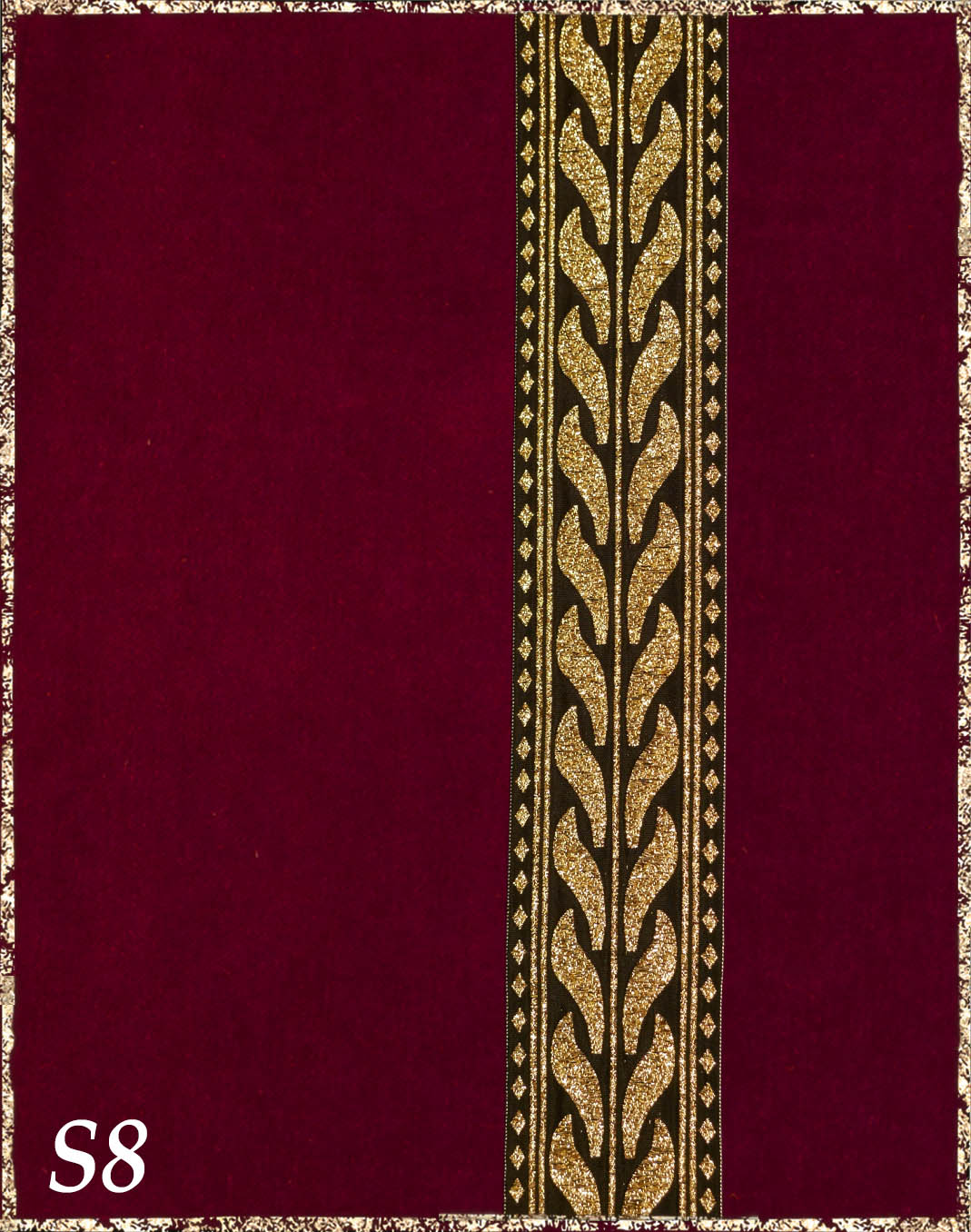 Farbvarianten: Hier siehst du unsere vorgeschlagenen Farben des Gewandes, zusammen mit der Borte. Die Borten sind größenmäßig vergleichbar mit der Modellborte. Andere Kombination gewünscht? Wähle das "?"