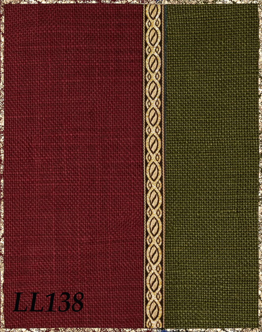 Farbvarianten: Die linke Seite des Farbbildes beschreibt immer die Hauptfarbe des Gewandes, die rechte Seite die Nebenfarbe (hier Halsbeleg und Ärmelsaum). Die Borten sind größenmäßig vergleichbar mit der Modellborte. Andere Kombination gewünscht? Wähle das "?"