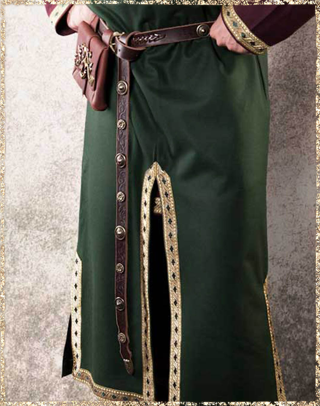 Durch die Überlänge lässt sich der Gürtel im typischen mittelalterlichen Stil tragen, locker gebunden und elegant herabhängend.