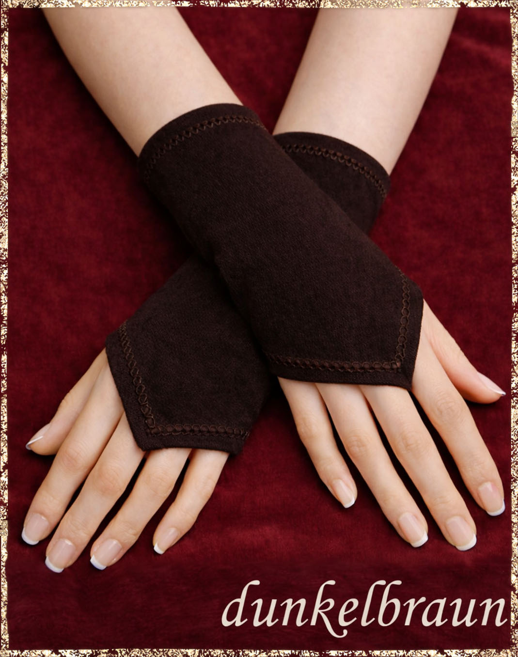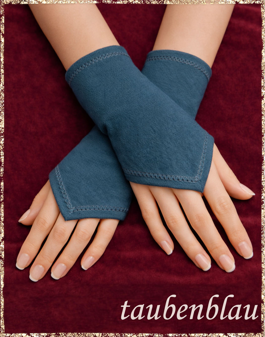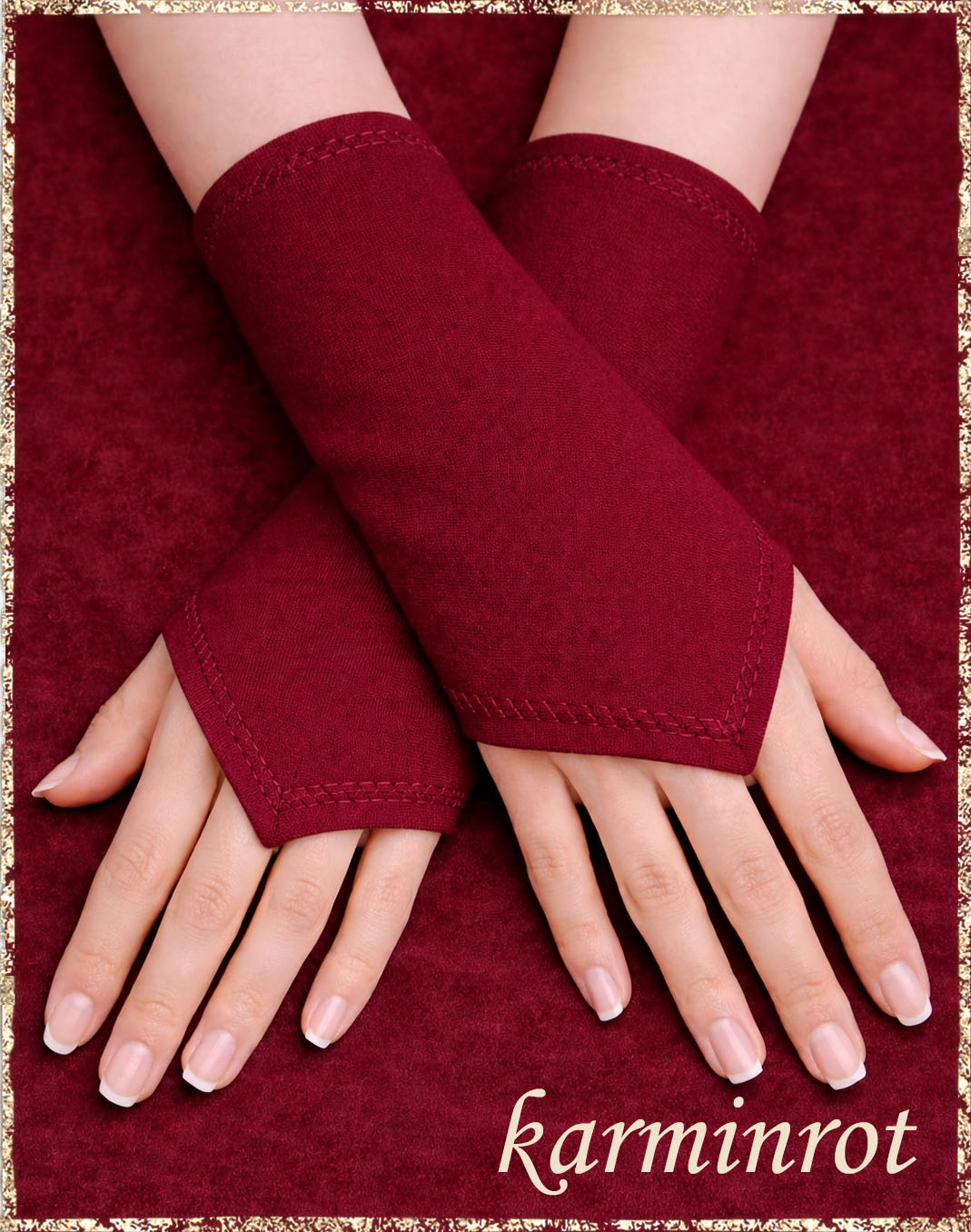 Die Stulpen gehen bis knapp unter den Ellbogen und laufen vorne leicht spitz zu, wodurch eine elegante Linie entsteht und der Look besonders harmonisch wirkt – ideal für Mittelaltermärkte, LARP, den Theaterbesuch, aber auch als stilvolles Extra im Alltag oder zu festlichen Anlässen. Dazu kommen satte Farben, die dein Gewand gezielt ergänzen oder einen schönen Akzent setzen.