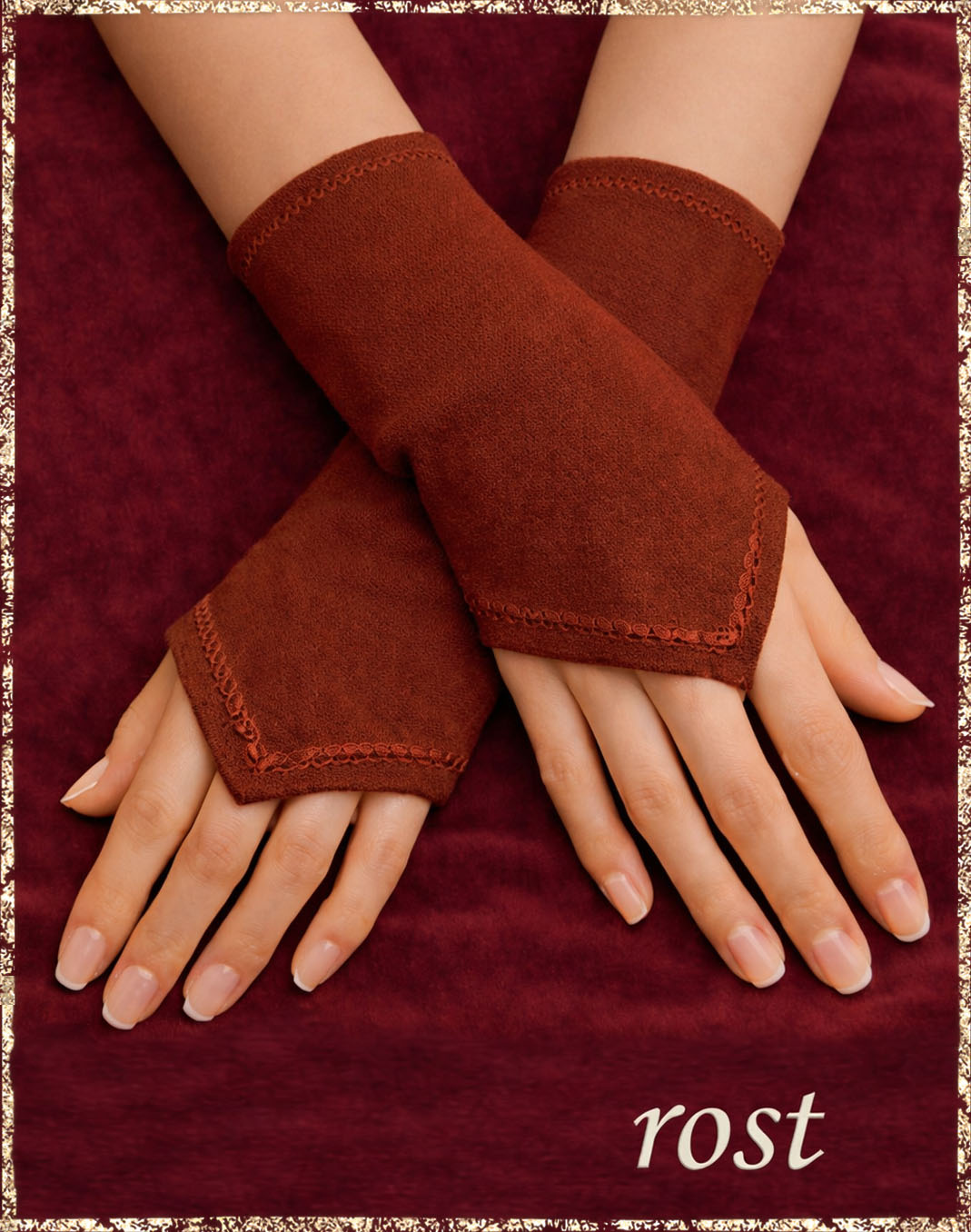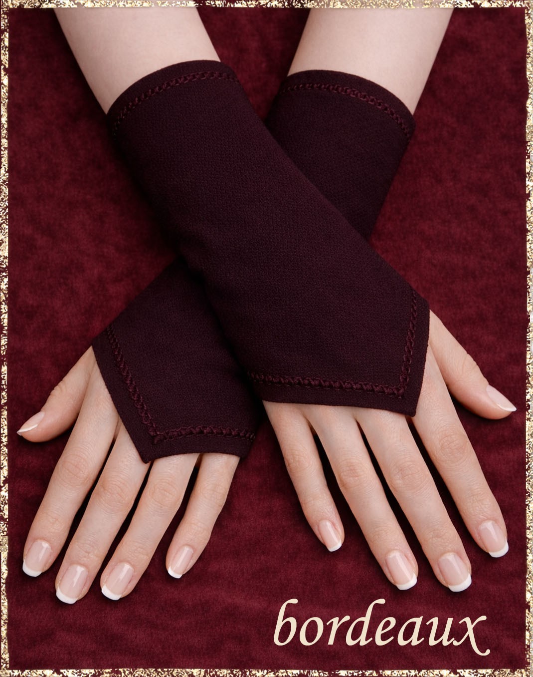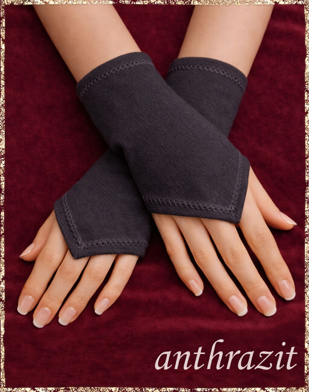 Die Stulpen gehen bis knapp unter den Ellbogen und laufen vorne leicht spitz zu, wodurch eine elegante Linie entsteht und der Look besonders harmonisch wirkt – ideal für Mittelaltermärkte, LARP, den Theaterbesuch, aber auch als stilvolles Extra im Alltag oder zu festlichen Anlässen. Dazu kommen satte Farben, die dein Gewand gezielt ergänzen oder einen schönen Akzent setzen.