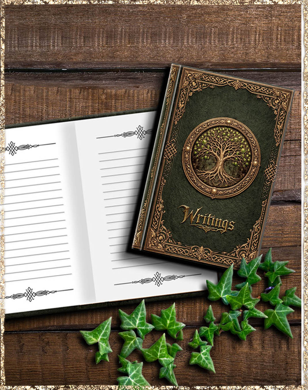 Ein Notizbuch, das wirkt wie ein Fundstück aus einer alten Bibliothek: altgrüne Lederoptik, mit Keltknoten und Yggdrasil, dem Lebensbaum – kraftvoll, mystisch und stilvoll zugleich. Perfekt als Geschenk für Menschen, die Mittelalter, Kelten-Ästhetik oder Fantasy lieben oder als dein eigenes Buch für Gedanken, Skizzen, Pläne und Rituale.